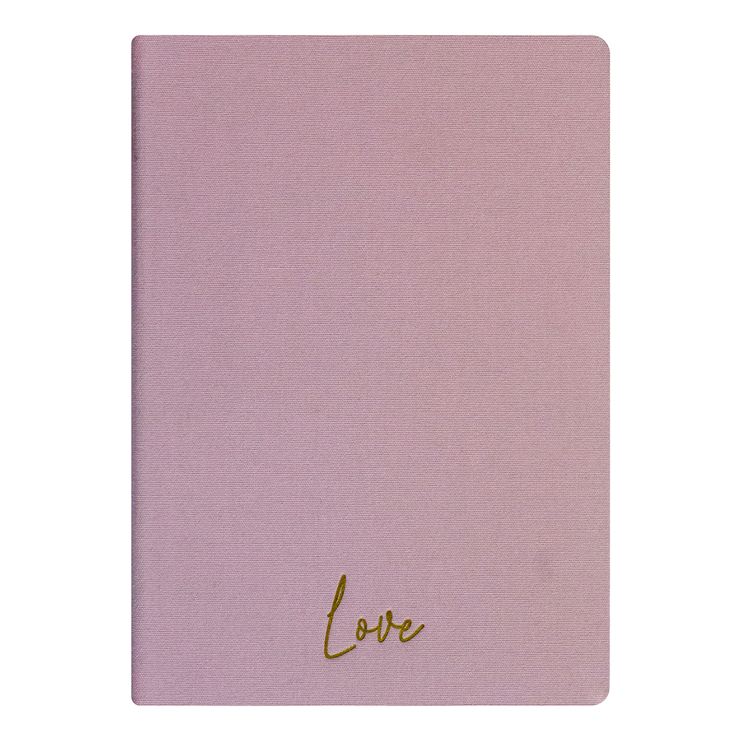 Love defter - Keten sert kapak - Kareli 192 sayfa – 15x21,3cm - Pembe